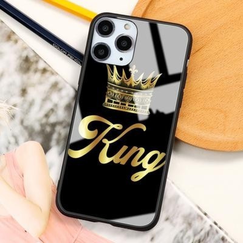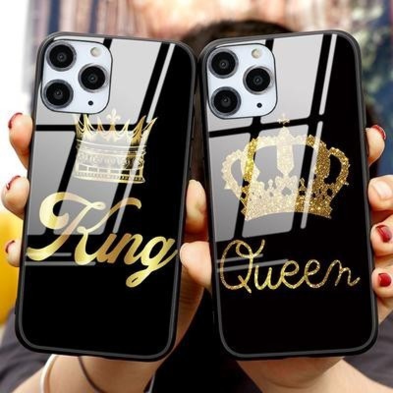 Король и королева Корона Пара Жесткий закаленный стеклянный чехол для телефона для iPhone SE 2022 13