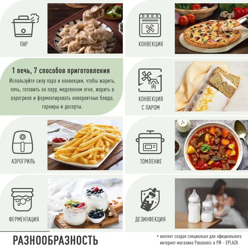 Многофункциональное устройство на вашей кухнеВсего одна печь позволит вам готовить, как настоящий профессионал. В дополнение к разогреву паром, печь можно использовать для выпечки, парообработки, варки компота, тушения и ферментации.